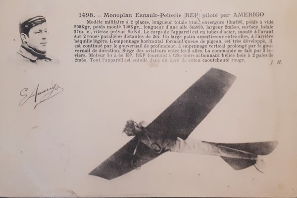 Cartolina - Monoplan Esnault Pelterie ( REP ) pilote par Amerigo - 1912 | Cartoline |
