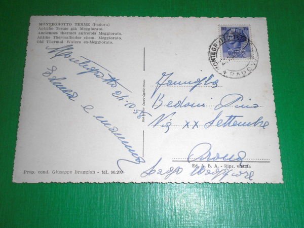 Cartolina Montegrotto Terme ( Padova ) - Antiche Terme già Meggiorato 1958
