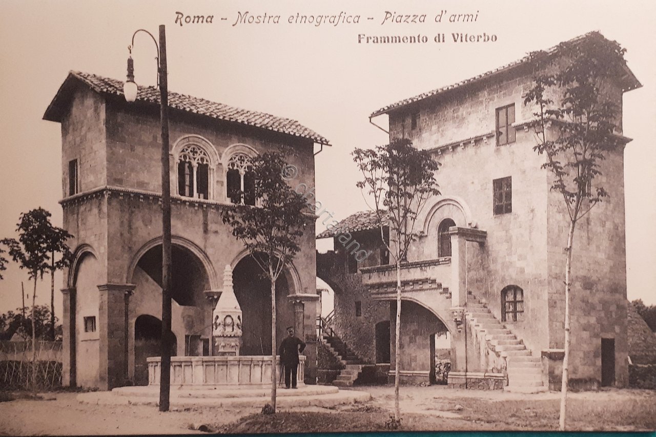 Cartolina Mostra etnografica - Roma - Piazza d'Armi - Frammento di Viterbo 1911