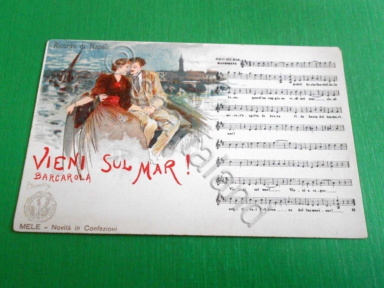 Cartolina Musicale Bideri - Ricordo di Napoli - Vieni sul Mar ! 1910 ca