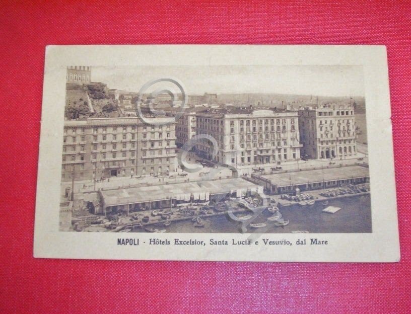 " *** Cartolina raffigurante Napoli - Hotels Excelsior, Santa Lucia e Vesuvio, dal Mare. La cartolina è viaggiata. Datata 1912. Per appassionati studiosi e collezionisti