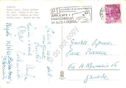 Cartolina Napoli Santa Lucia Castel dell'Ovo panorama dall'alto con barche 1961