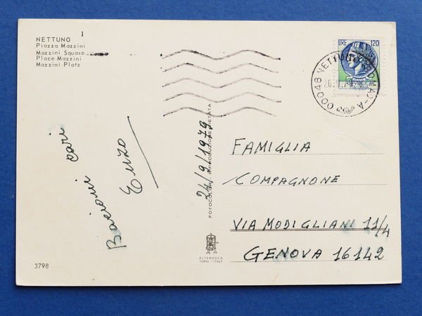 Cartolina Nettuno - Piazza Mazzini - 1979