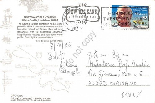 Cartolina Nottoway Plantation White Castle Louisiana 1993