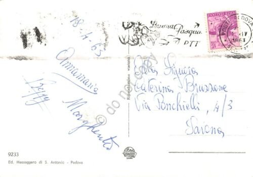 Cartolina Padova Piazza del Santo con Basilica 1963 timbro Buona Pasqua