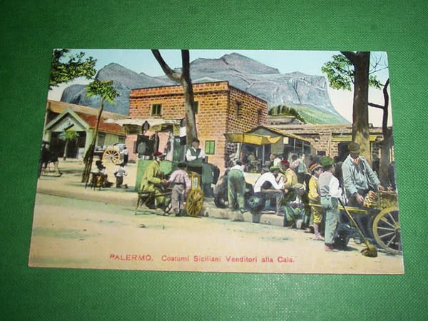 " *** Cartolina raffigurante Palermo - Costumi siciliani - Venditori alla Cala. La cartolina non è viaggiata. Datata 1910 ca. Per appassionati, studiosi e collezionisti