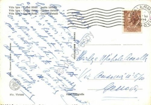 Cartolina Palermo Villa Igiea Grand Hotel Giardino 1954