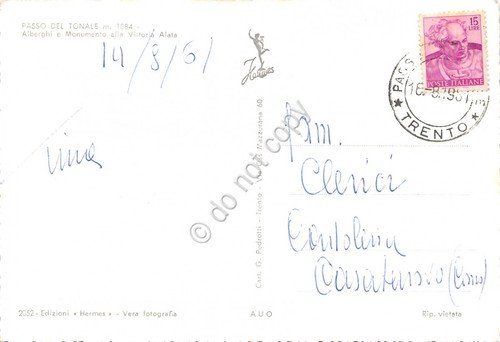 Cartolina Passo del Tonale Alberghi e Monumento alla Vittoria Alata 1961 | Cartoline |