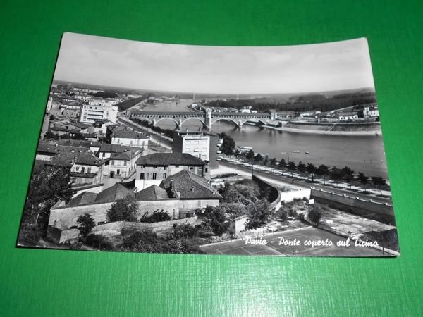 Cartolina Pavia - Ponte coperto sul Ticino 1954 | Cartoline |