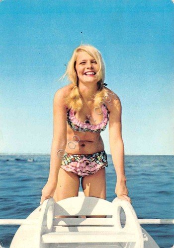 Cartolina Pin up bikini fantasia rosa in mare 1964