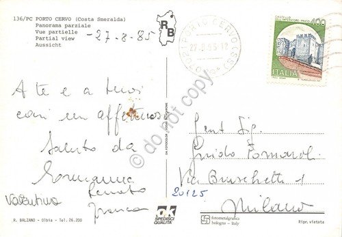 Cartolina Porto Cervo Sardegna Panorama parziale dall'alto 1985 (Sassari)