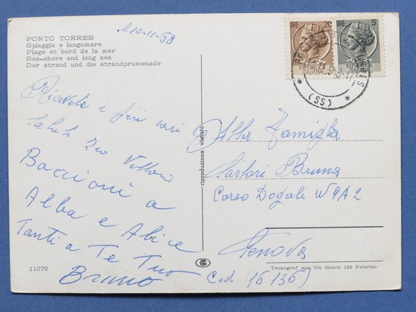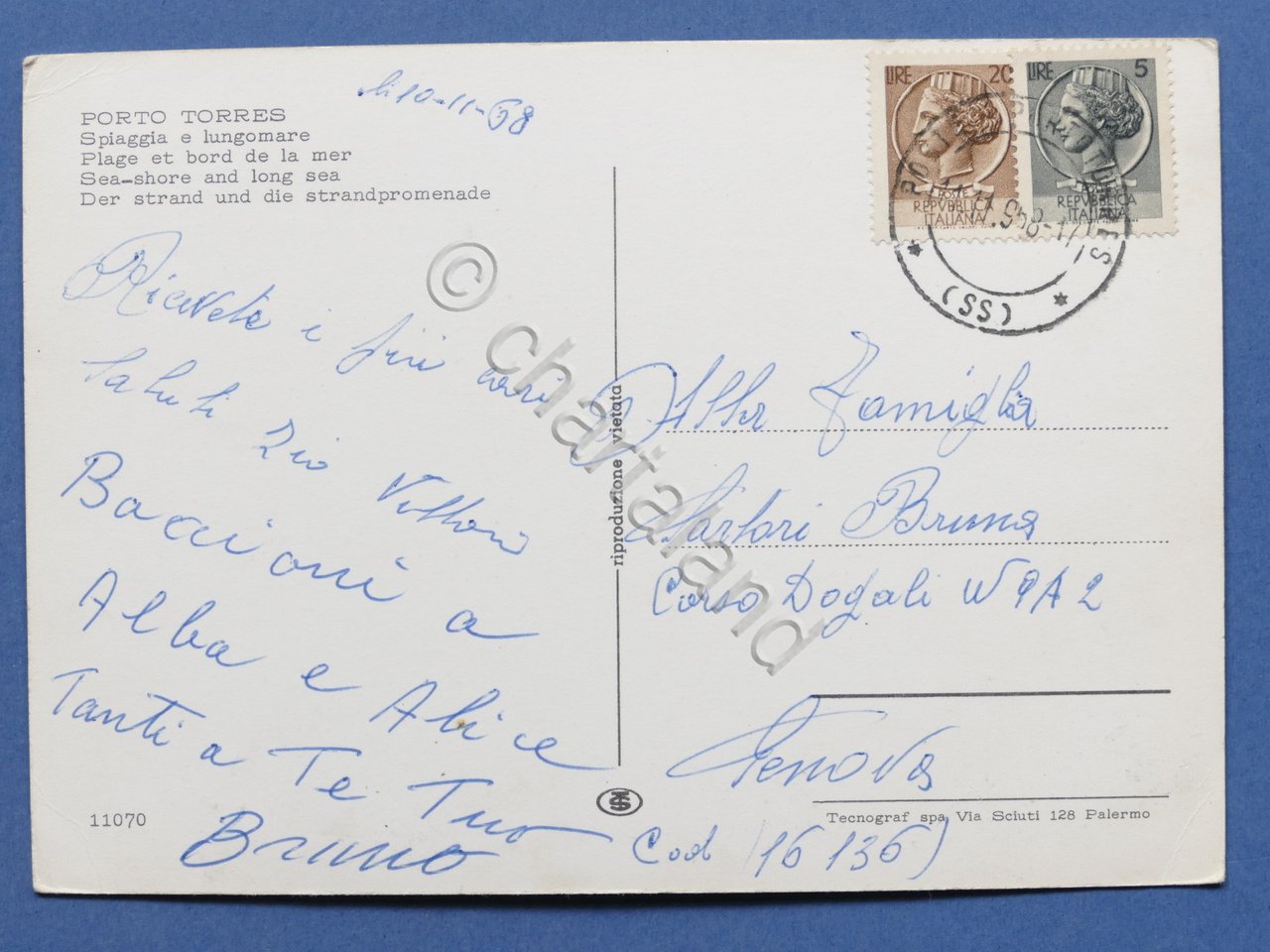 Cartolina Porto Torres - Spiaggia e lungomare - 1968