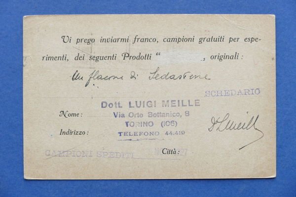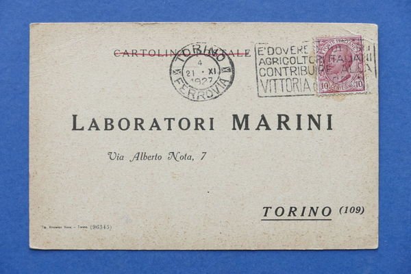Cartolina Pubblicitaria - Laboratori Marini - Torino - 1927. | Cartoline |