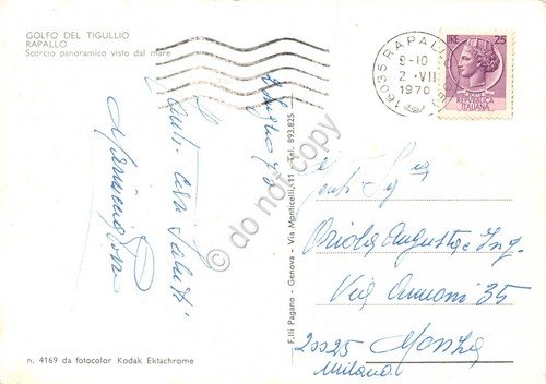 Cartolina Rapallo Panorama parziale dal mare 1970 (Genova)
