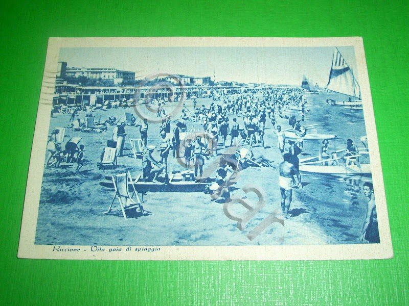 Cartolina Riccione - Scorcio di spiaggia animatissima 1948
