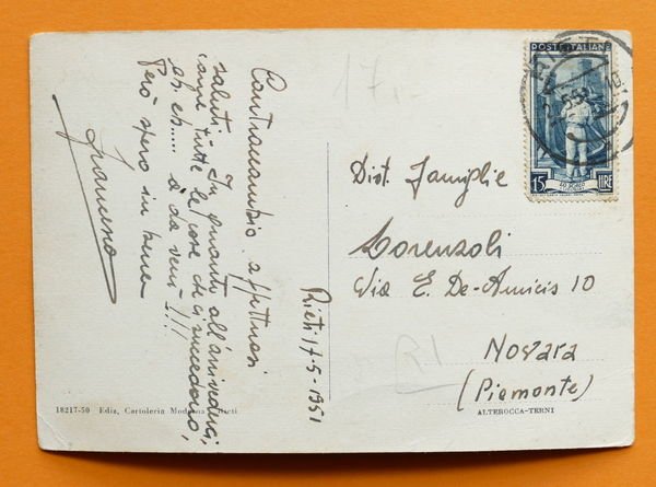Cartolina Rieti - Piazzale della Stazione - Convitto Municipale - 1951 | Cartoline |