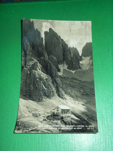 Cartolina Rifugio Vicenza del Sasso Lungo con Dente di Mezzodì 1954