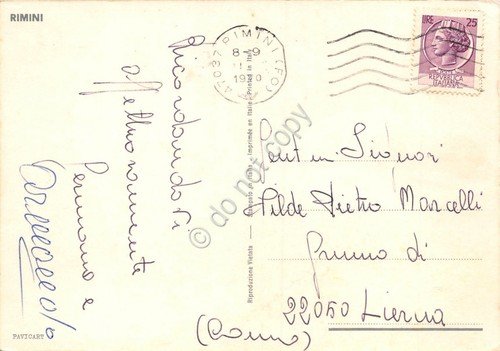 Cartolina Rimini panorama della spiaggia e stabilimenti 1970