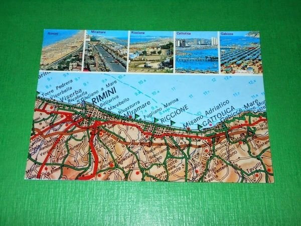" *** Cartolina Riviera Adriatica - Rimini - Cartina e altre vedute. La cartolina non è viaggiata. Databile 1965 ca. Formato grande. Per appassionati, studiosi e collezionisti