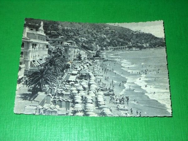 Cartolina Riviera dei Fiori - Alassio - Spiaggia 1955