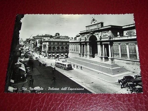 Cartolina Roma Via Nazionale e Palazzo Esposizione 1952.