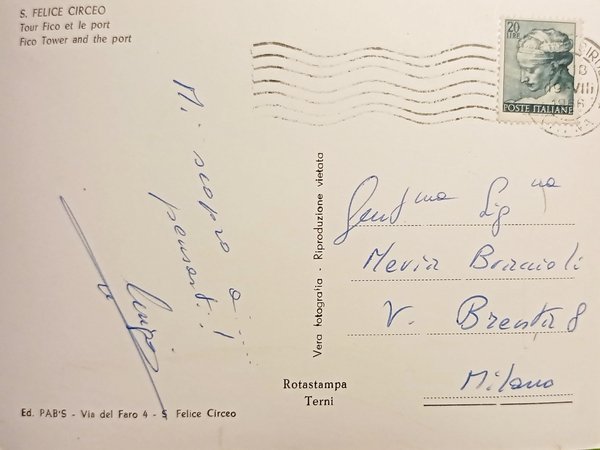 Cartolina - S. Felice Circeo ( Latina ) - Torre Fico e il Porto - 1966