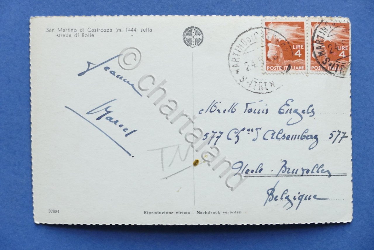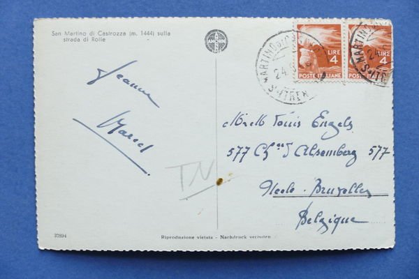 Cartolina S. Martino di Castrozza - Sulla strada di Rolle - 1948 1948 Cartolina formato piccolo - viaggiata Condizioni buone, come da foto Per appassionati, studiosi e collezionisti