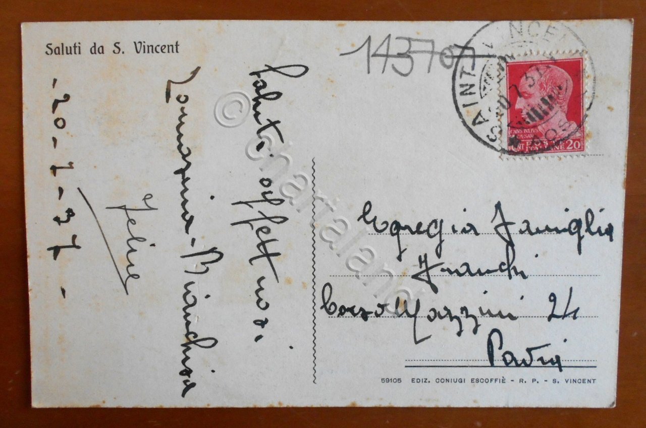 Cartolina S. Vincent - alt. m. 575 - Veduta generale - 1937 | Cartoline |