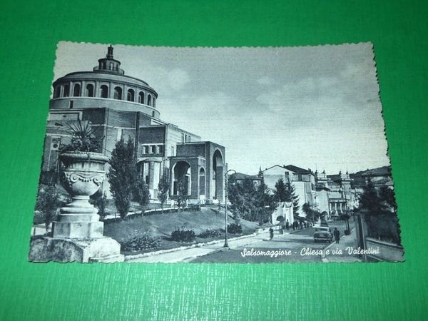 Cartolina Salsomaggiore - Chiesa e via Valentini 1950 ca.