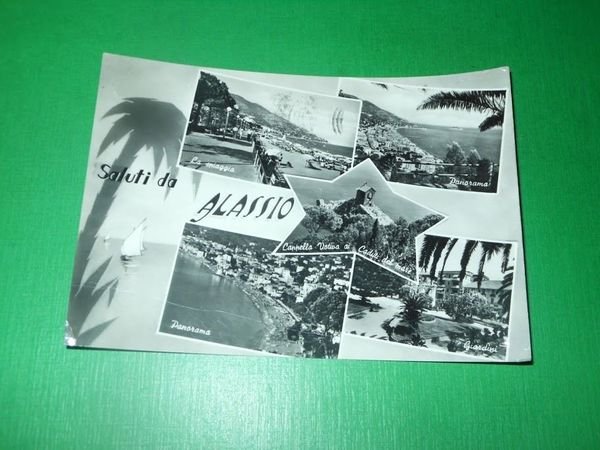 Cartolina Saluti da Alassio - Vedute diverse 1957