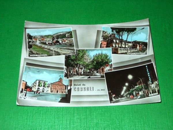 " *** Cartolina Saluti da Carsoli - Vedute diverse. La cartolina è viaggiata. Datata 1960 ca. Formato grande. Per appassionati, studiosi e collezionisti