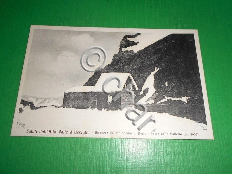 " *** Cartolina Saluti dall' Alta Valle d' Usseglio - Ricovero del Ghiacciaio di Berta - Passo della Valletta. La cartolina è viaggiata. Datata 1929. Formato piccolo. Rif. numero 25994 Per appassionati, studiosi e collezionisti
