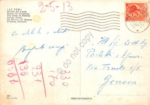 Cartolina San Remo statua della Primavera 1957 (Imperia)