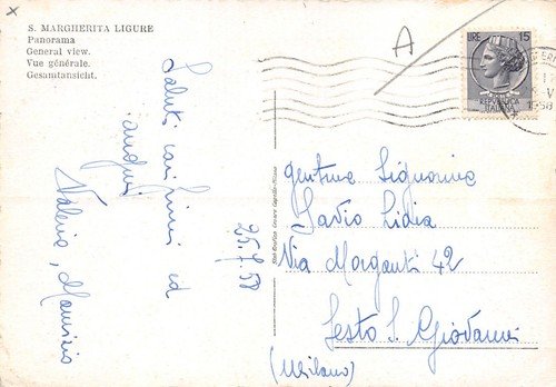 Cartolina Santa Margherita Ligure Panorama e lungomare 1958 (Genova)