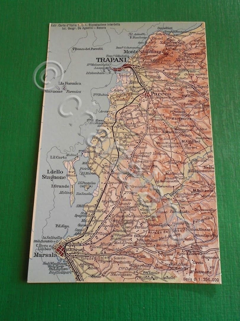 Cartolina Sicilia - Trapani e dintorni - Cartina geografica 1920 ca