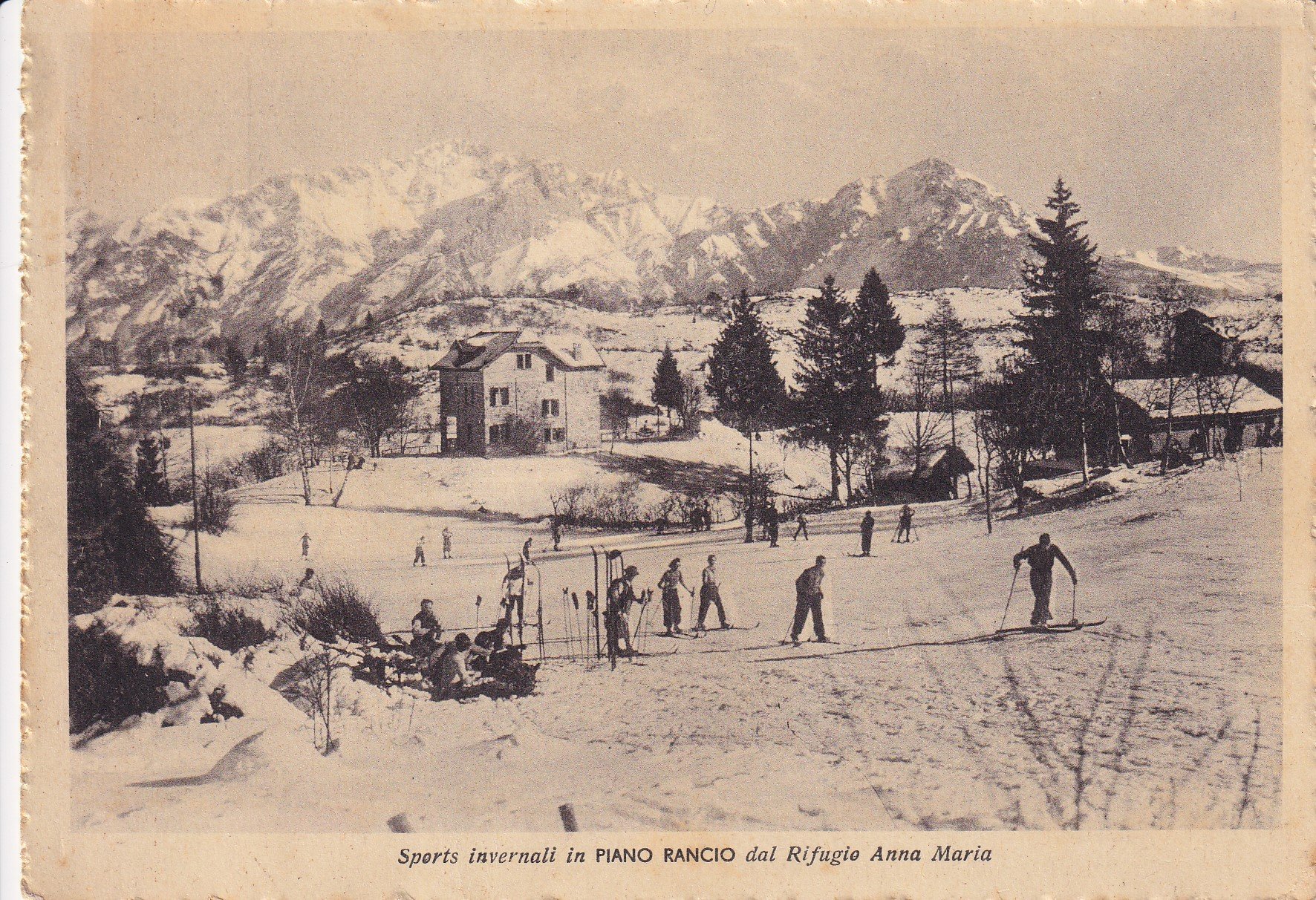 Cartolina Sports invernali in PIANO RANCIO dal Rifugio Anna Maria. 1946