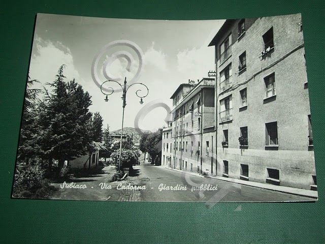 Cartolina Subiaco - Via Cadorna - Giardini pubblici '56. | Cartoline |