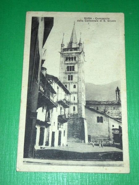 " *** Cartolina Susa - Campanile della Cattedrale di S. Giusto. La cartolina è viaggiata. Datata 1928. Formato piccolo. Per appassionati, studiosi e collezionisti
