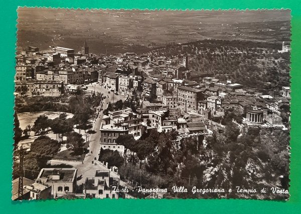 Cartolina Tivoli - Panorama - Villa Gregoriana e Tempio di Vesta - 1952 | Cartoline |