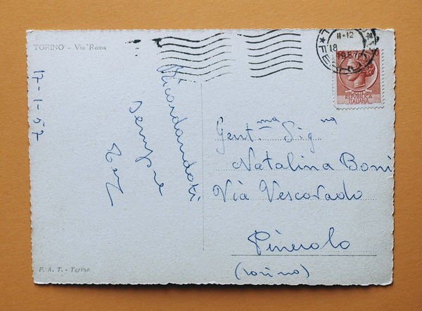Cartolina Torino - Via Roma - 1957 1957 Cartolina formato grande - viaggiata Condizioni buone, come da foto Per appassionati, studiosi e collezionisti