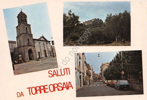 Cartolina Torre Orsaia vedute varie paese case anni '80