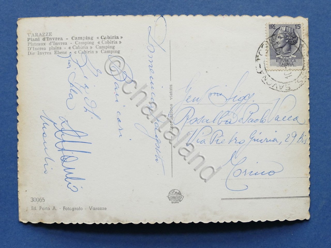 Cartolina Varazze - Piani d'Invrea - Camping Cabiria - 1959 1959 Cartolina formato grande - viaggiata Condizioni buone, come da foto Per appassionati, studiosi e collezionisti