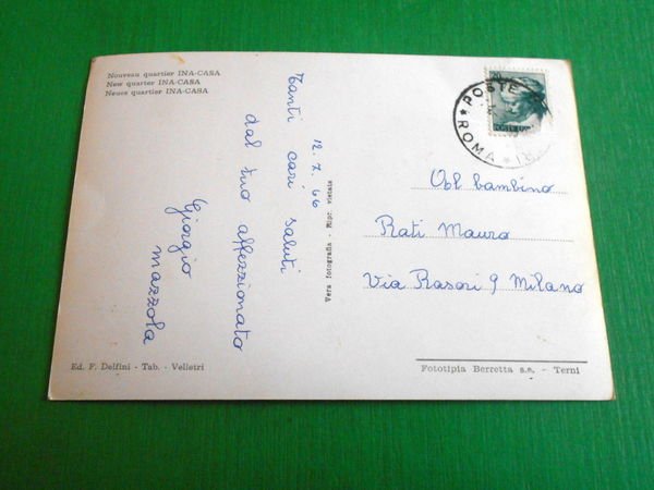 Cartolina Velletri - Nuovo quartiere INA CASA 1966 Datata 1966. Cartolina formato grande - viaggiata Condizioni molto buone, come da foto Per appassionati, studiosi e collezionisti