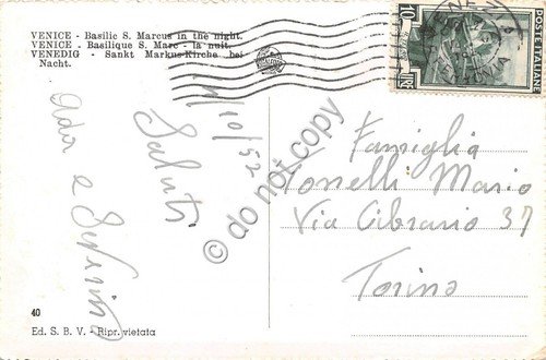 Cartolina Venezia Basilica di San Marco Notturno 1952 | Cartoline |