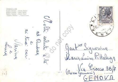 Cartolina Venezia Lido Quattro Fontane Canale Casinò e panorama parziale 1961