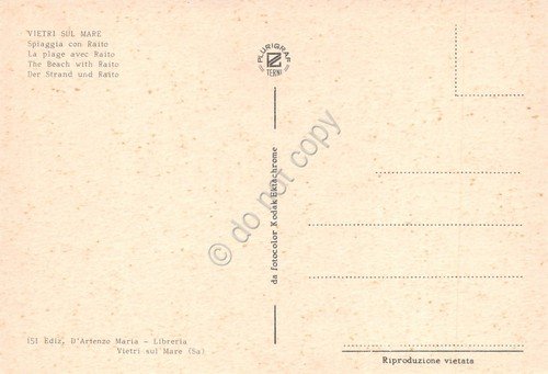Cartolina Vietri sul mare spiaggia con Raito stabilimenti case anni '70