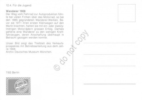 Cartolina Wanderer 1908 timbro filatelico 1983 | Cartoline |