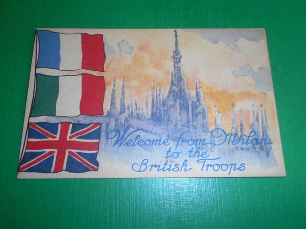 Cartolina WWI - Benvenuti a Milano dalle Truppe Britanniche - Off. Ricordi Databile 1918 ca. Cartolina formato piccolo - non viaggiata Condizioni molto buone, come da foto Per appassionati, studiosi e collezionisti