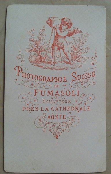 Fumasoli Cherubin, fotografo Albumina formato carte da visite fotografo Fumasoli Cherubin Aosta. Aosta, Fumasoli Cherubin, fotografo e scultore fine '800 , cm 105 x 60 pp. Albumina formato carte da visite