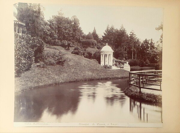 fotografo sconosciuto Albumina originale Villa Pallavicini Tempio di Diana e Lago Genova 1880 ca. Genova, fotografo non citato 1880 ca. , cm 255 x 360 pp. Albumina originale accoppiata a rigido cartoncino